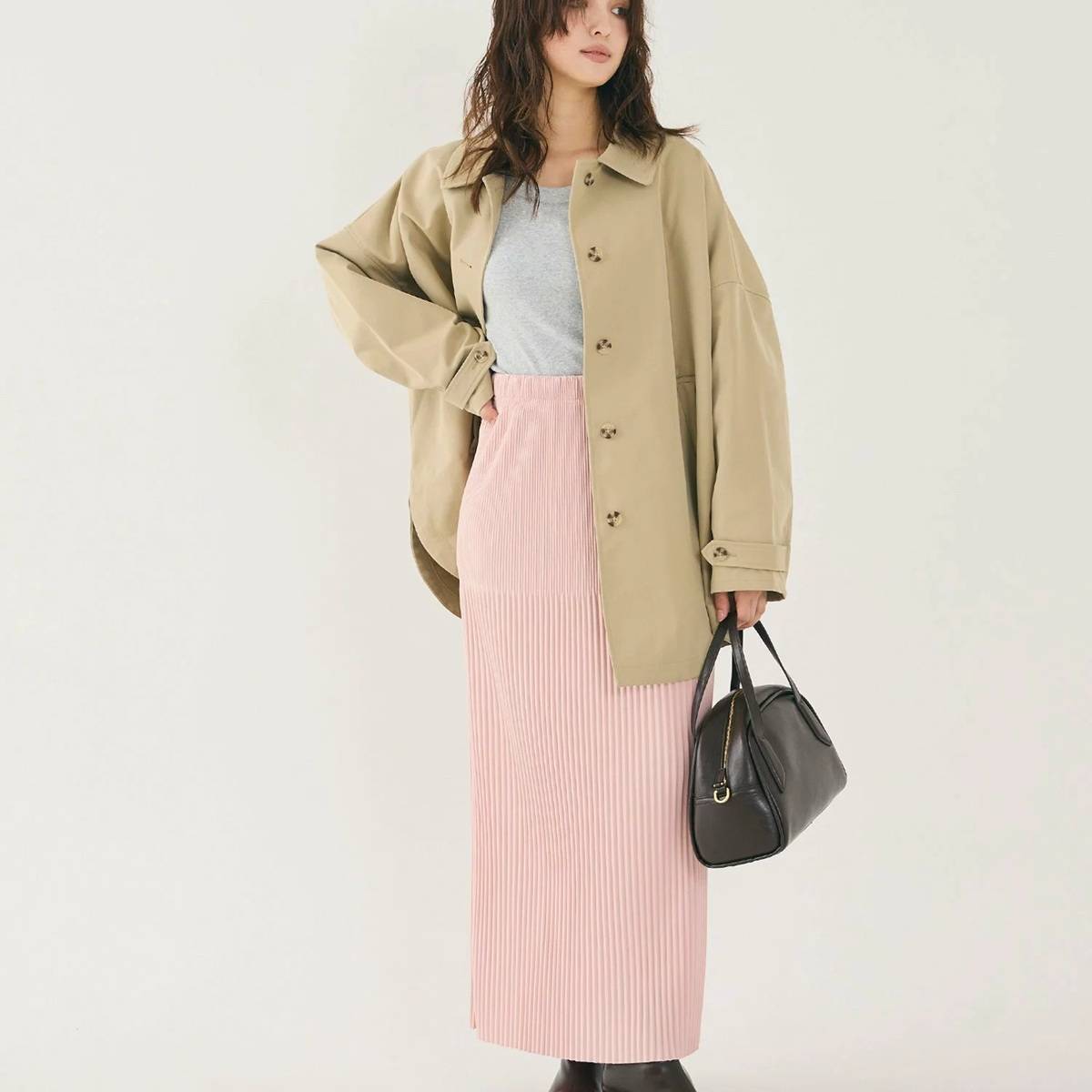 アウターは、肌寒い日でも安心のトレンチコートで、きれいめカジュアルに仕上げて。