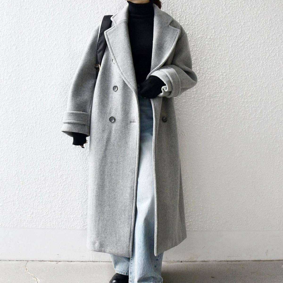 冬定番のロングコートを羽織れば、すっきりシルエットのきれいめカジュアルコーデの完成です。