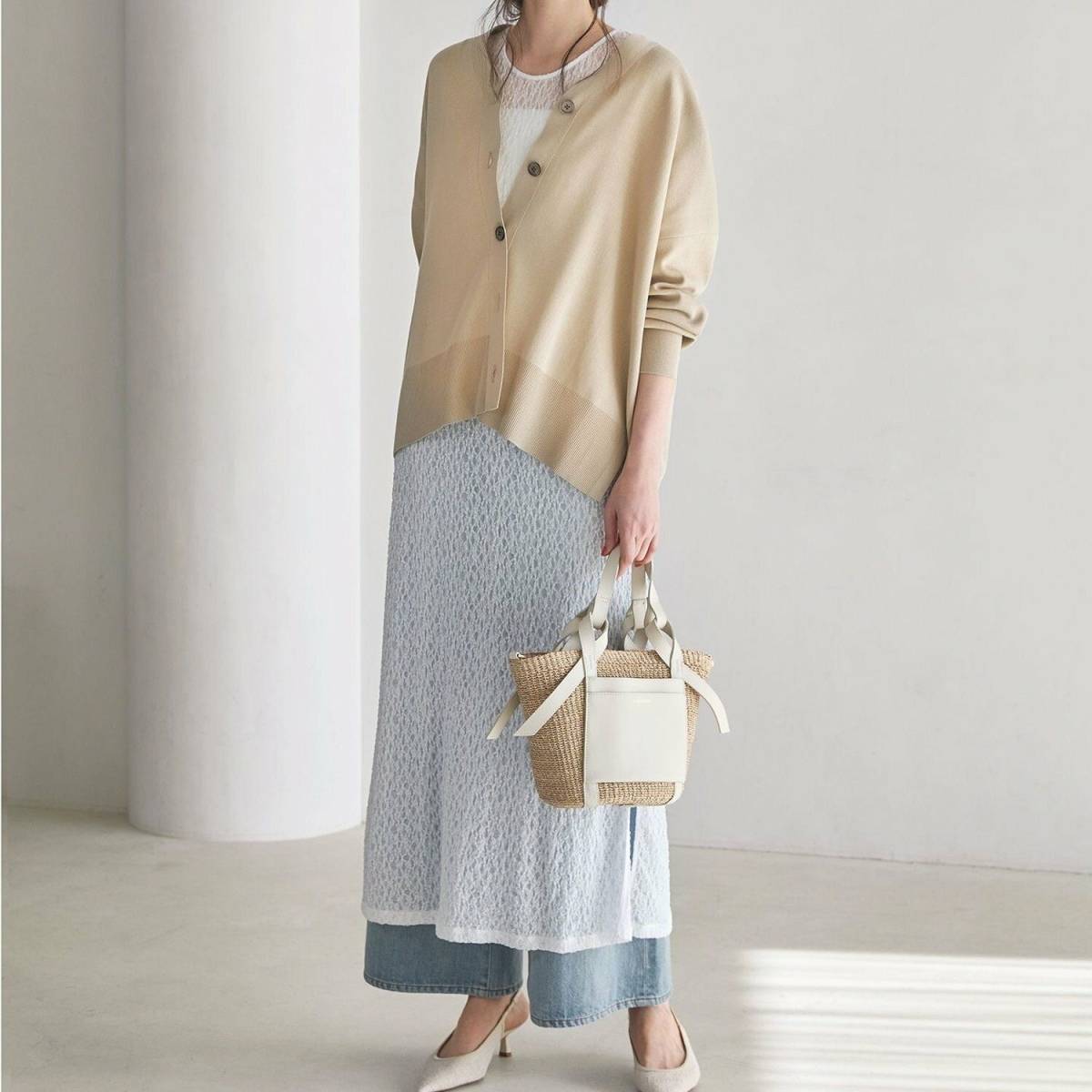 そんなときは、明るめのベージュカーディガンの出番です!
