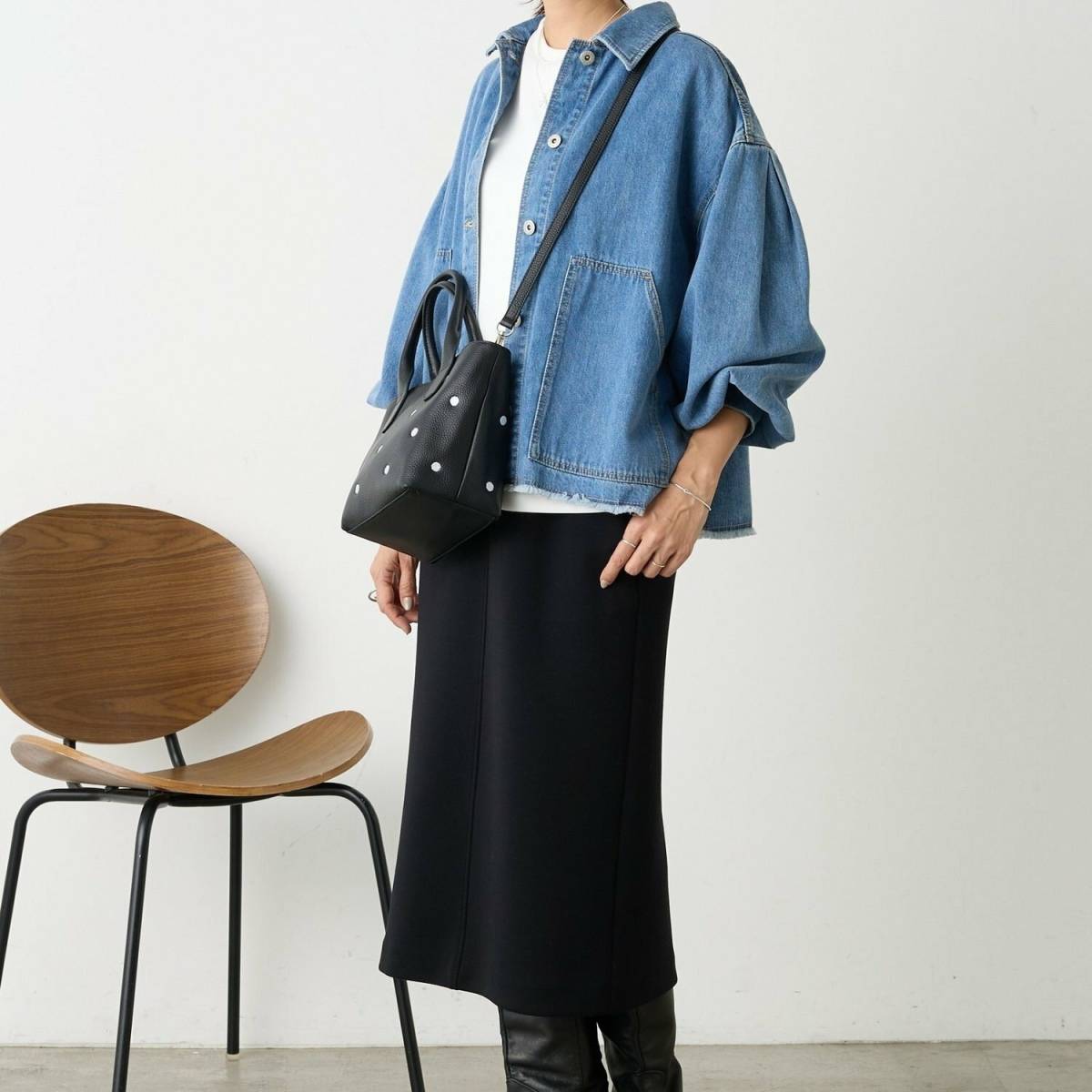 デニムシャツ×タイトリブスカート
