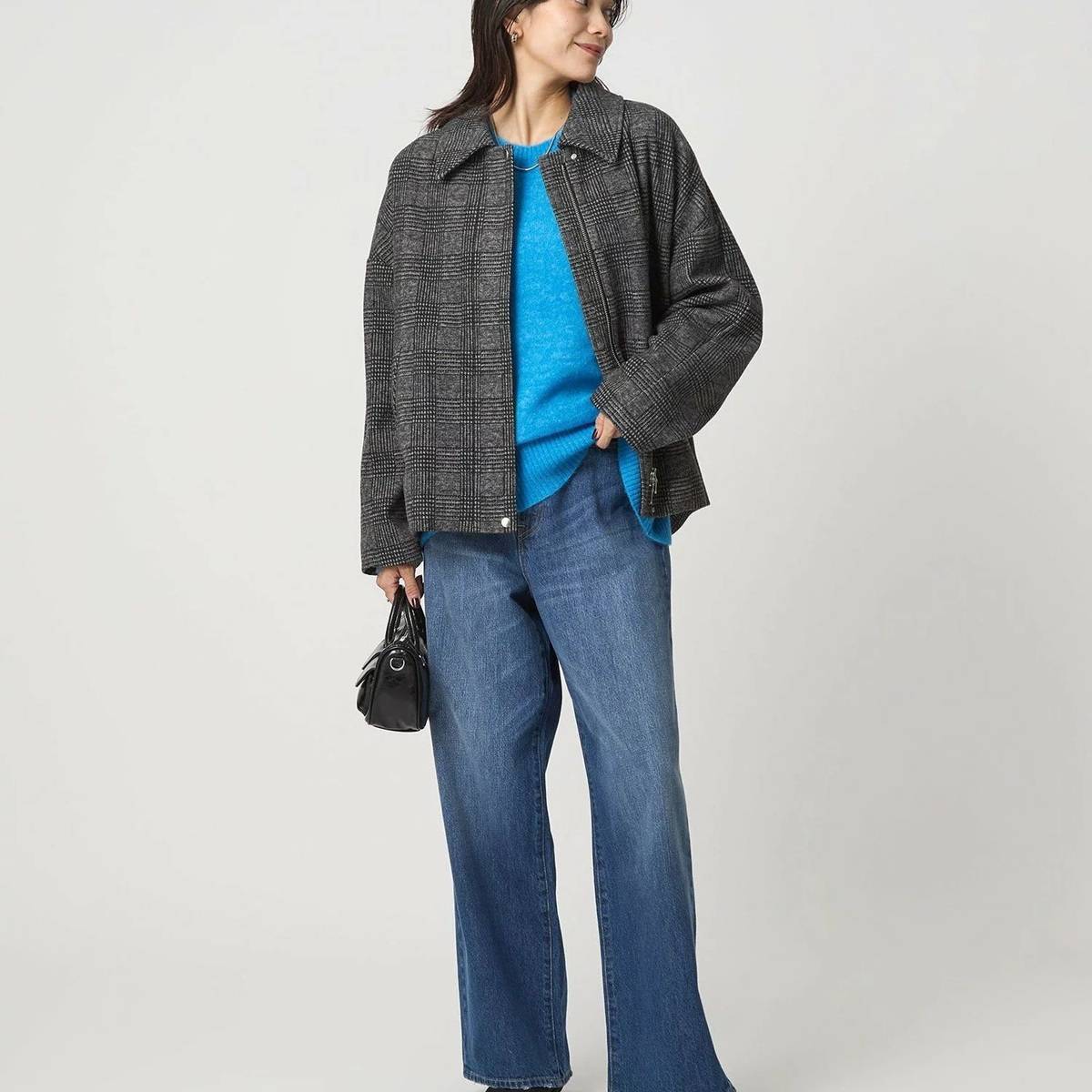 ショート丈のアウターがフレアデニムと好相性で、骨格ナチュラル・骨格ウェーブの方に似合う着こなしに。