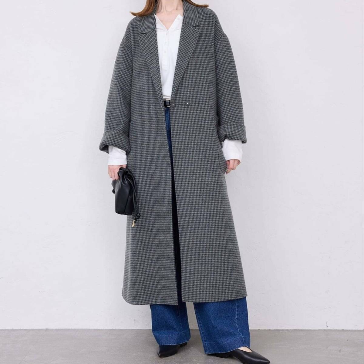 デニム×上品なロングコート