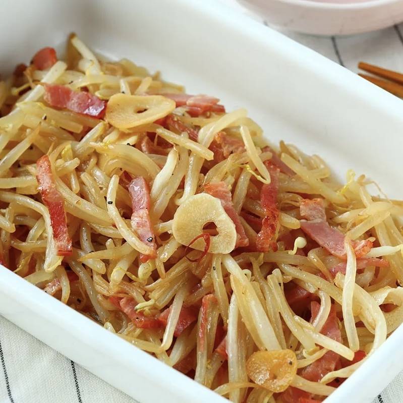 「もやし」の悪魔系作り置きおかず⑤もやしとベーコンのにんにく醤油炒め