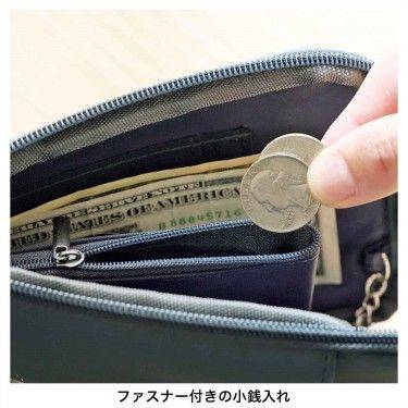 内側にはファスナー付き小銭入れ、カードポケットも備わっていてお財布機能も充実。
