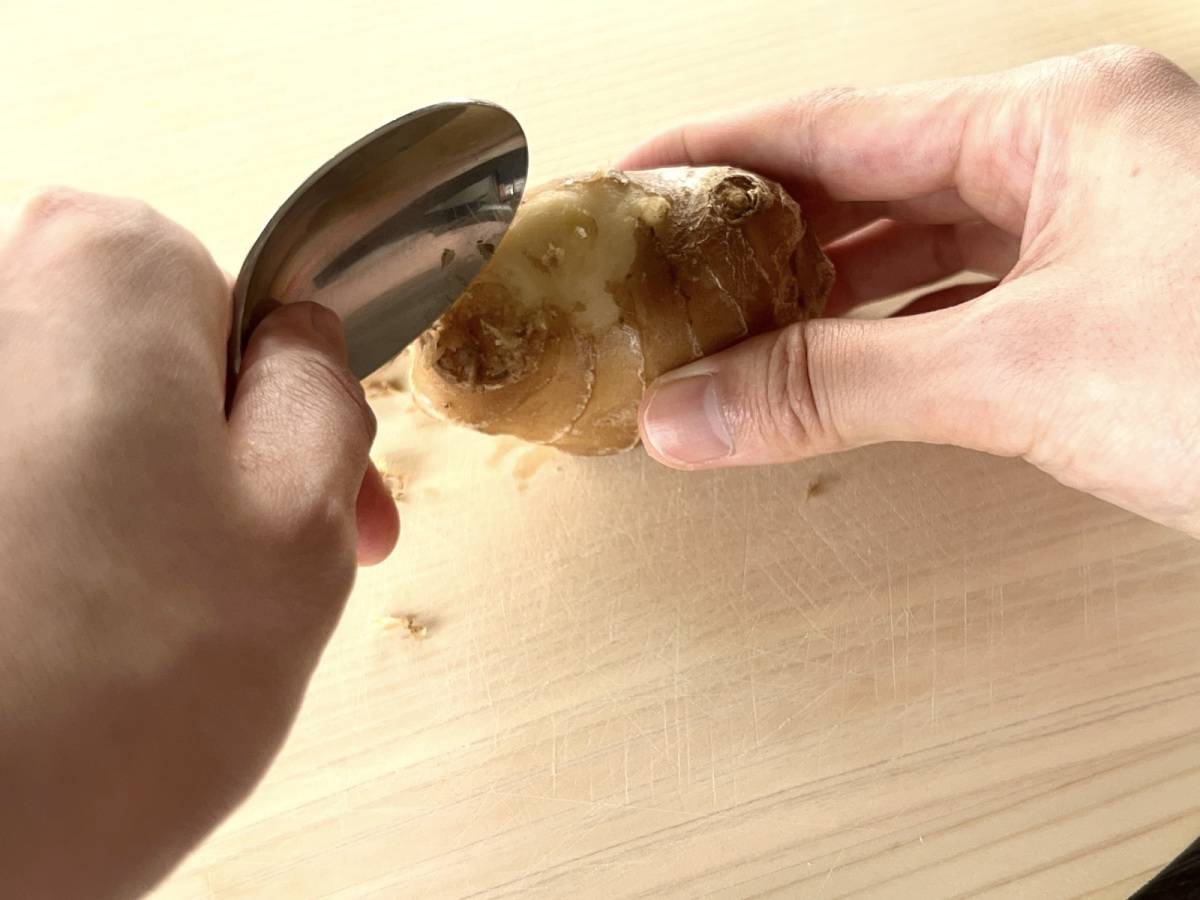 生姜をよく洗い、キッチンペーパーなどで水分をよく拭き取りましょう。