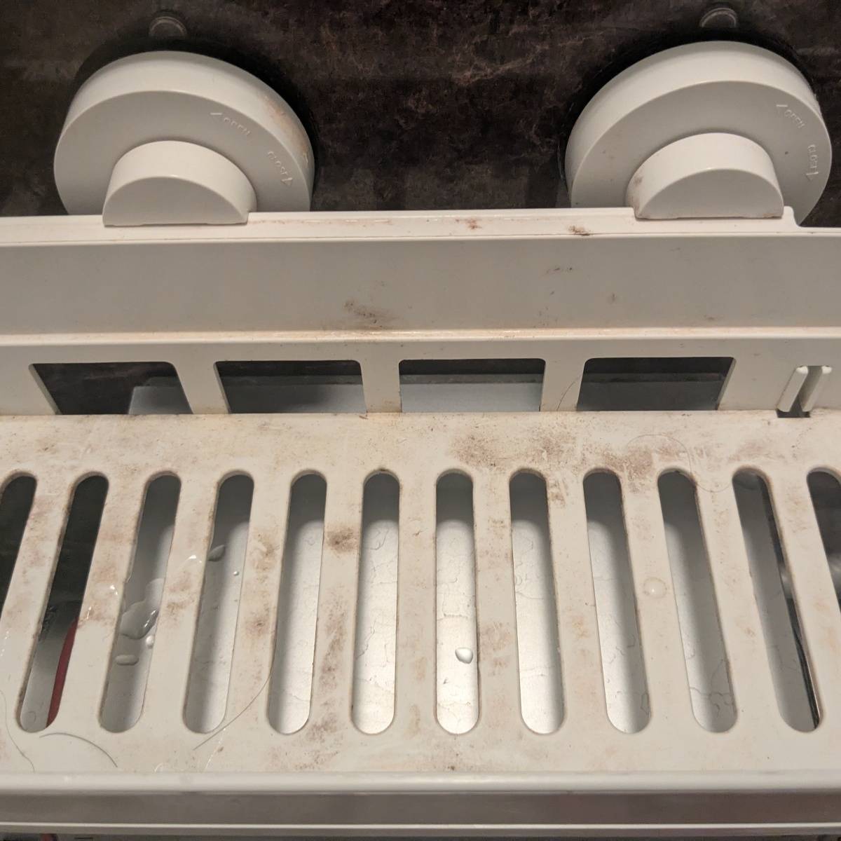 シャンプーやリンスなどを別の場所へ置いて、汚れをチェックします。