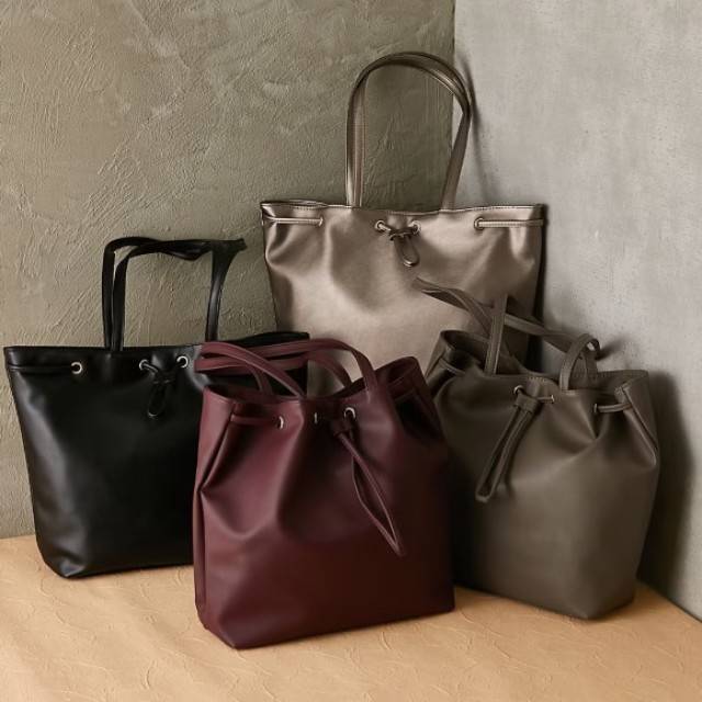 高見えトートバッグ③やわらか合皮フロントドロストトートバッグ