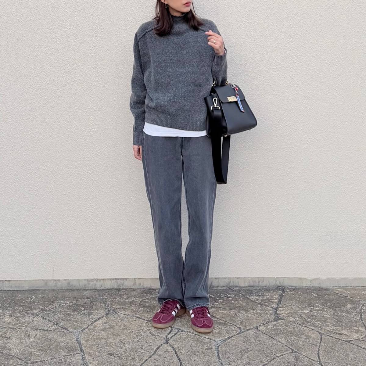 【冬編】センスいいデニムパンツコーデ⑤グレーのワントーンコーデが◎