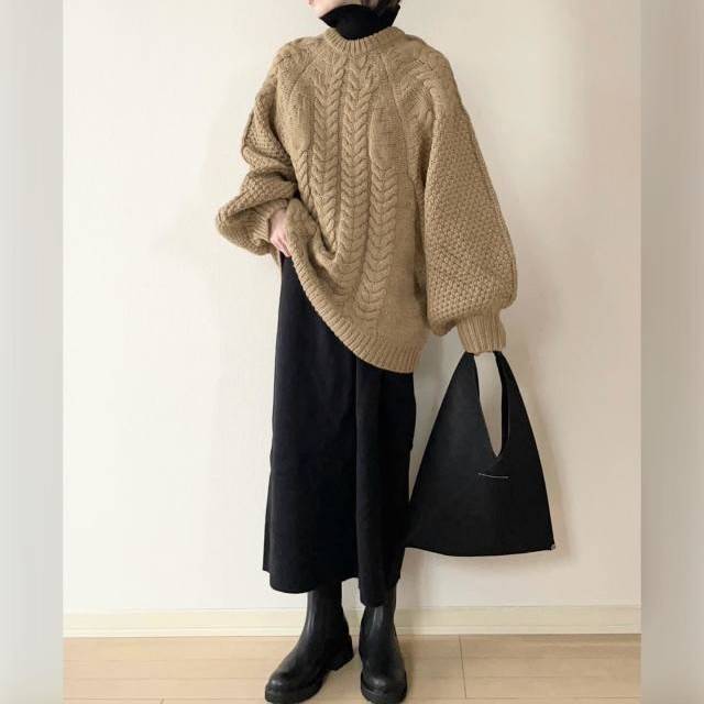 【冬編】垢抜ける50代向けニット冬コーデ⑤ボリュームスリーブニットを主役に♡