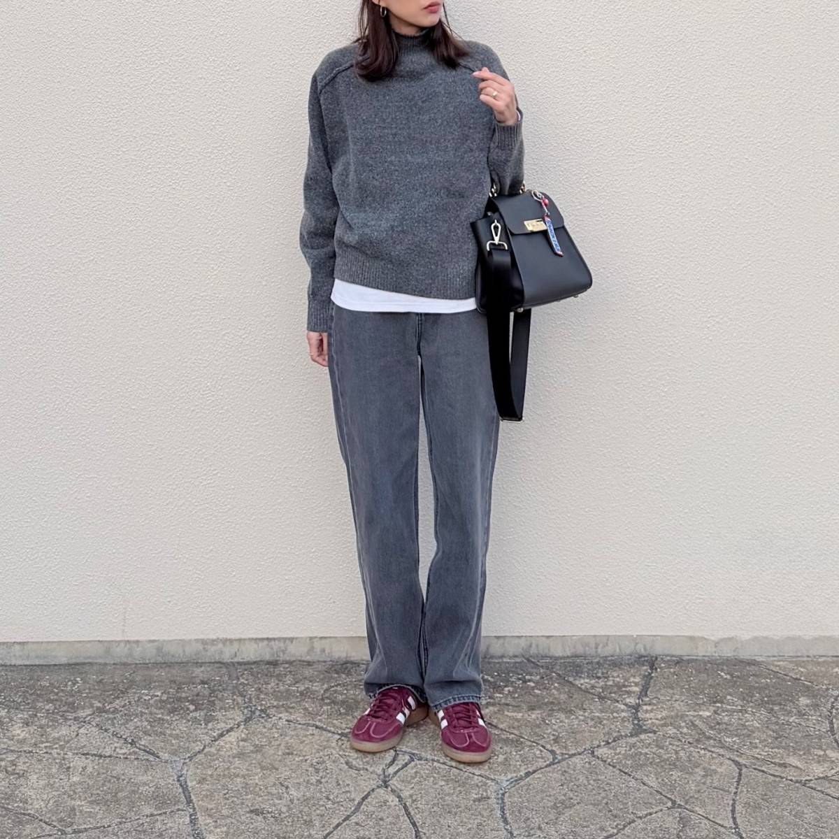 【1月編】センスいいデニムパンツコーデ⑤グレーのワントーンコーデ