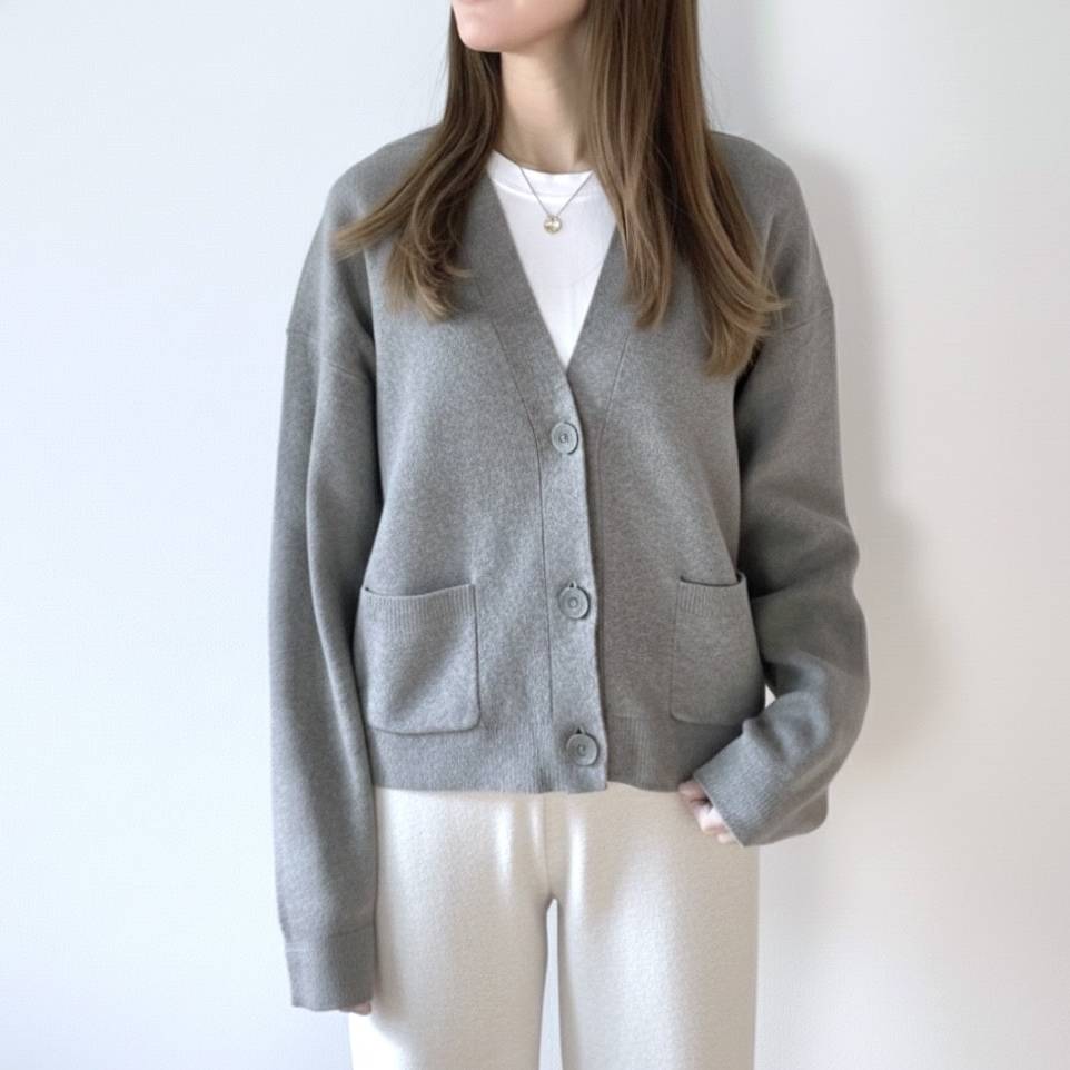 UNIQLO(ユニクロ)の「スムースコットンVネックショートカーディガン」は、グレー・ブラック・レッド・ナチュラル・グリーンの5色展開。