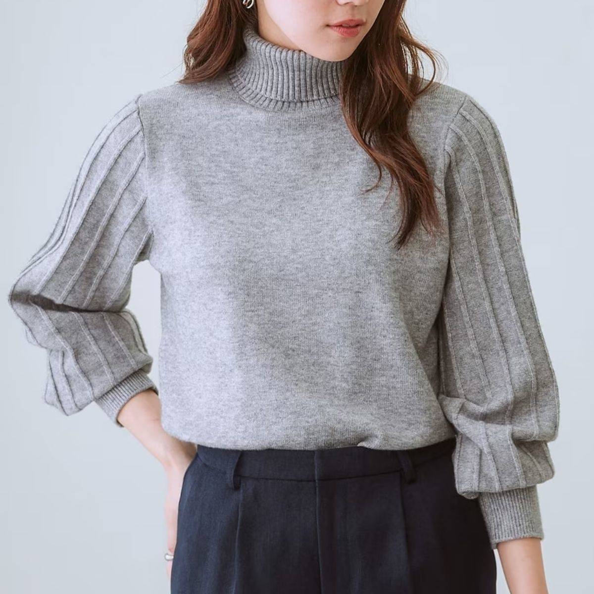 苦しくない、ちくちくしない!着心地抜群のタートルネック③ニッセン プリーツ風柄ボリューム袖タートルネックニット