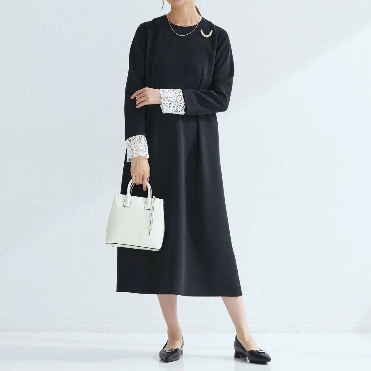 UNITED ARROWS green label relaxing(ユナイテッドアローズ グリーンレーベル リラクシング)の「袖レース2WAYワンピース」は、上品さと体型カバーを両立したセレモニーワンピース。