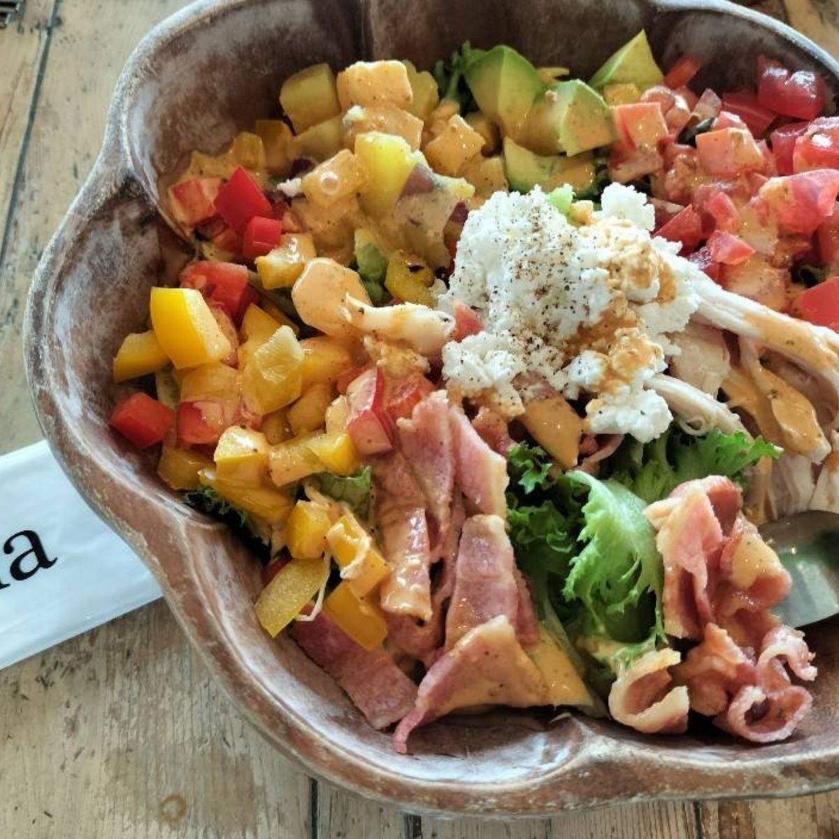 ドリンクはカラフルで可愛いものがあったり私が頼んだサラダも色とりどりで異国っぽい雰囲気が素敵🥹