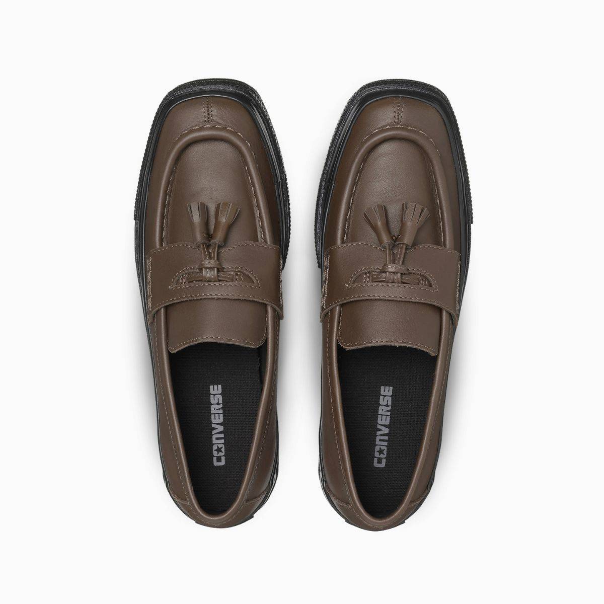 オールスター スクエアトウ ローファーは、定番のオールスターに、トレンドのスクエアトウとタッセルローファーのデザインを融合させた一足です。
