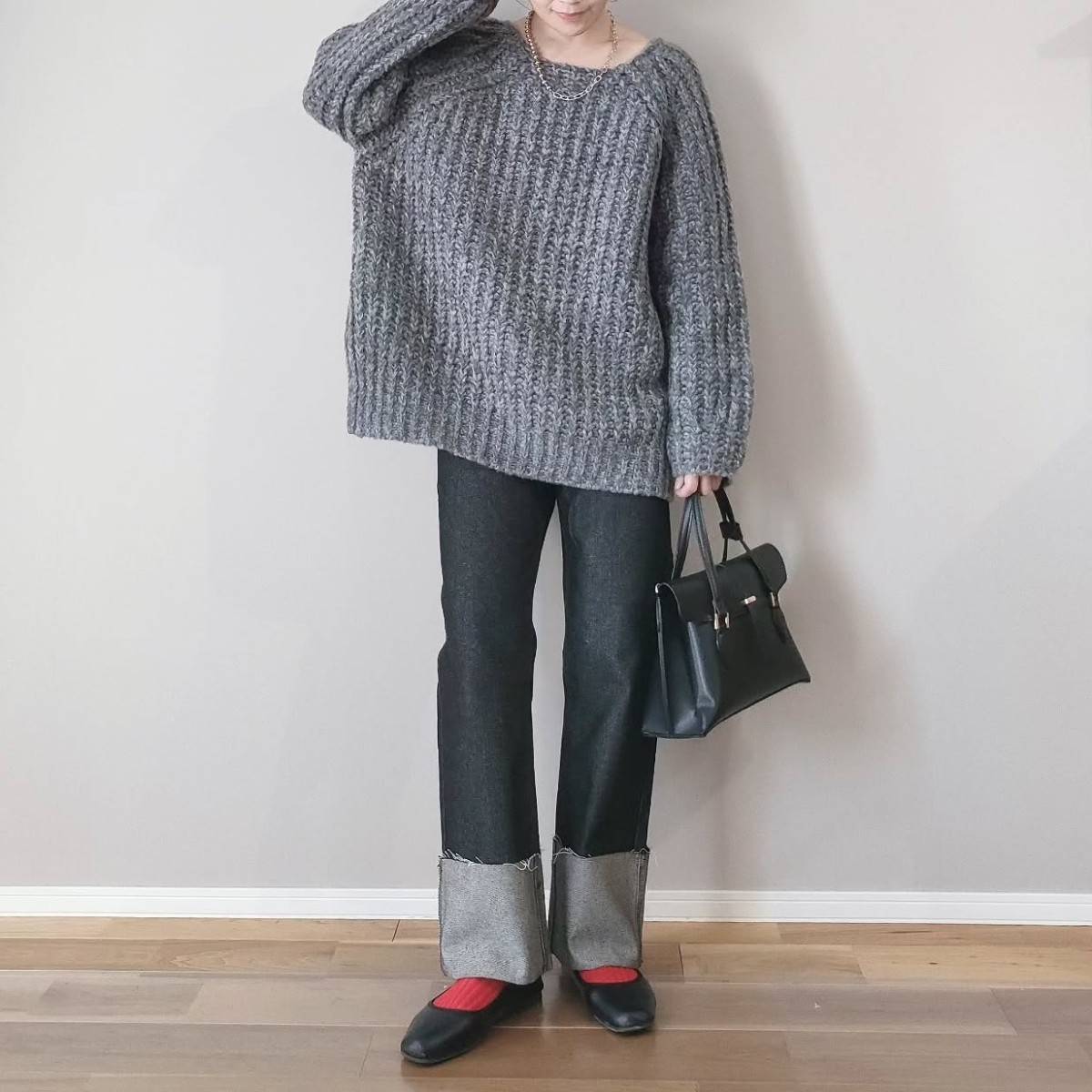 オーバーサイズのニットとデニムパンツの組み合わせは、あったかさもおしゃれさも叶う、2月にピッタリなコーデ♪