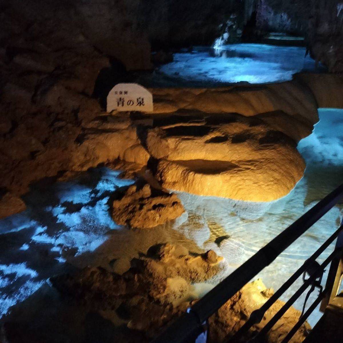 神秘的にブルーへライトアップされた水面と、約30万年かけて形成された鍾乳石が幻想的な絶景スポット!