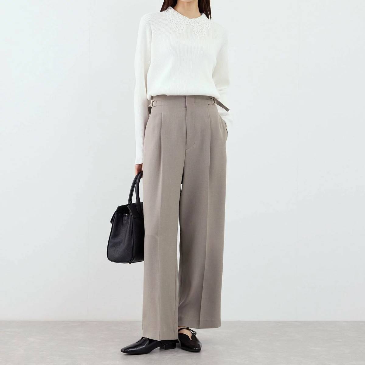 程よくワイドなシルエットは、フェミニンなブラウスを合わせてフォーマルに、すっきりシルエットのトップスをインして通勤に……とさまざまなシーンで大活躍。