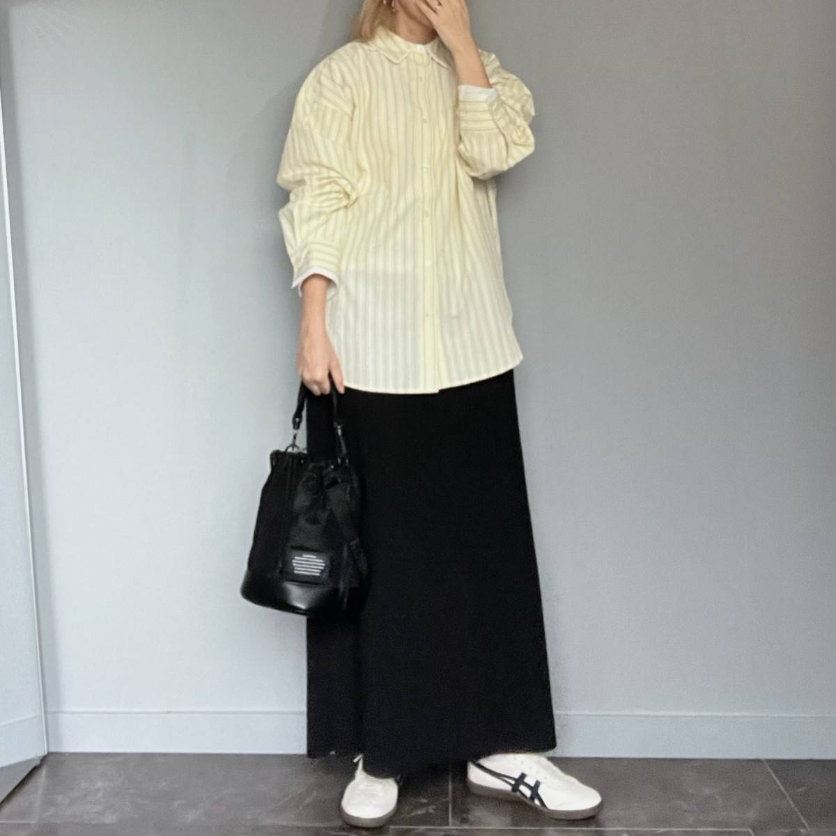 ストライプ柄というとブルーが定番ですが、あえてイエローを選ぶと春らしい印象に♡