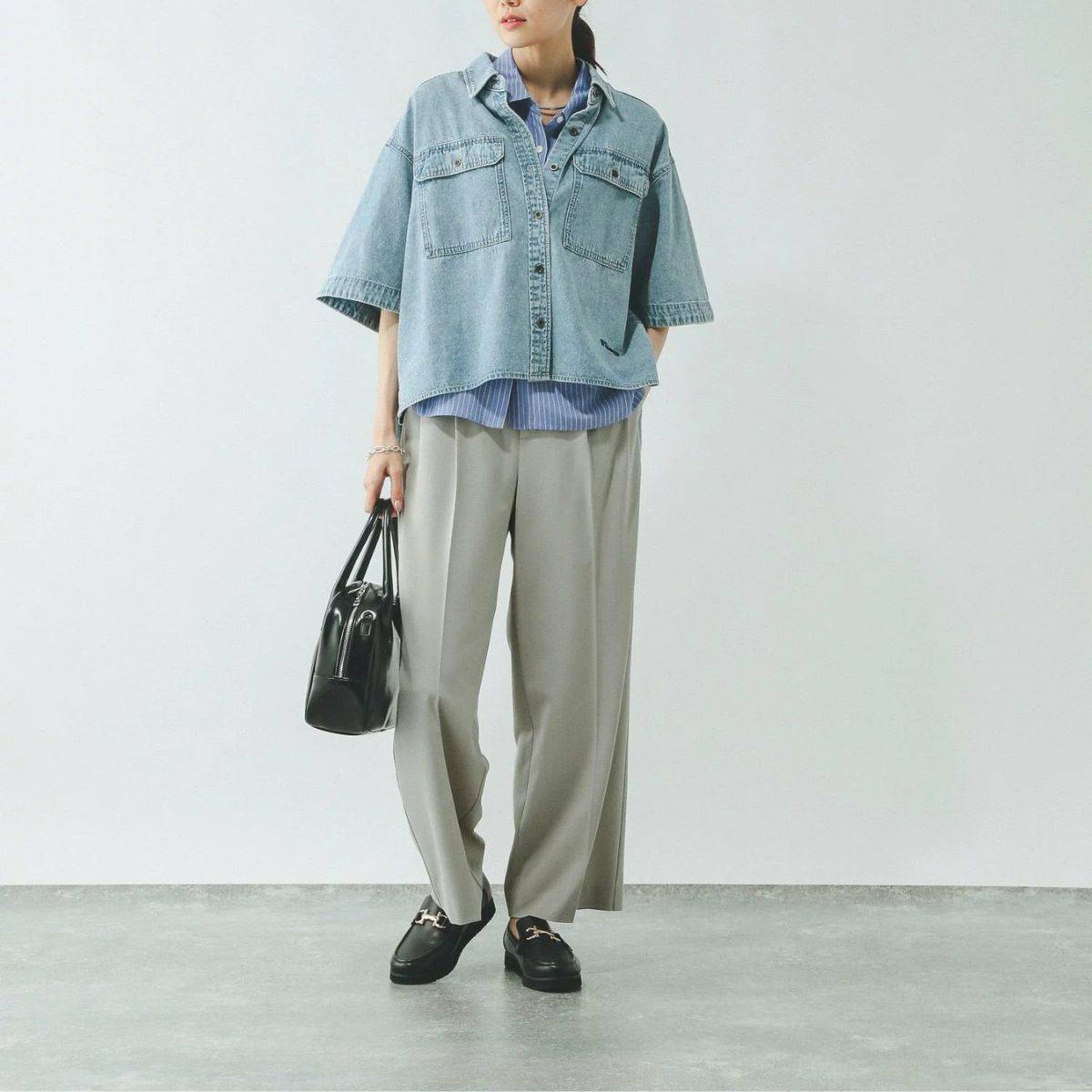 脚のラインが見えにくいボリュームのあるワイドパンツは、「全体的に大きく見えてしまう」と悩む方も多いもの。