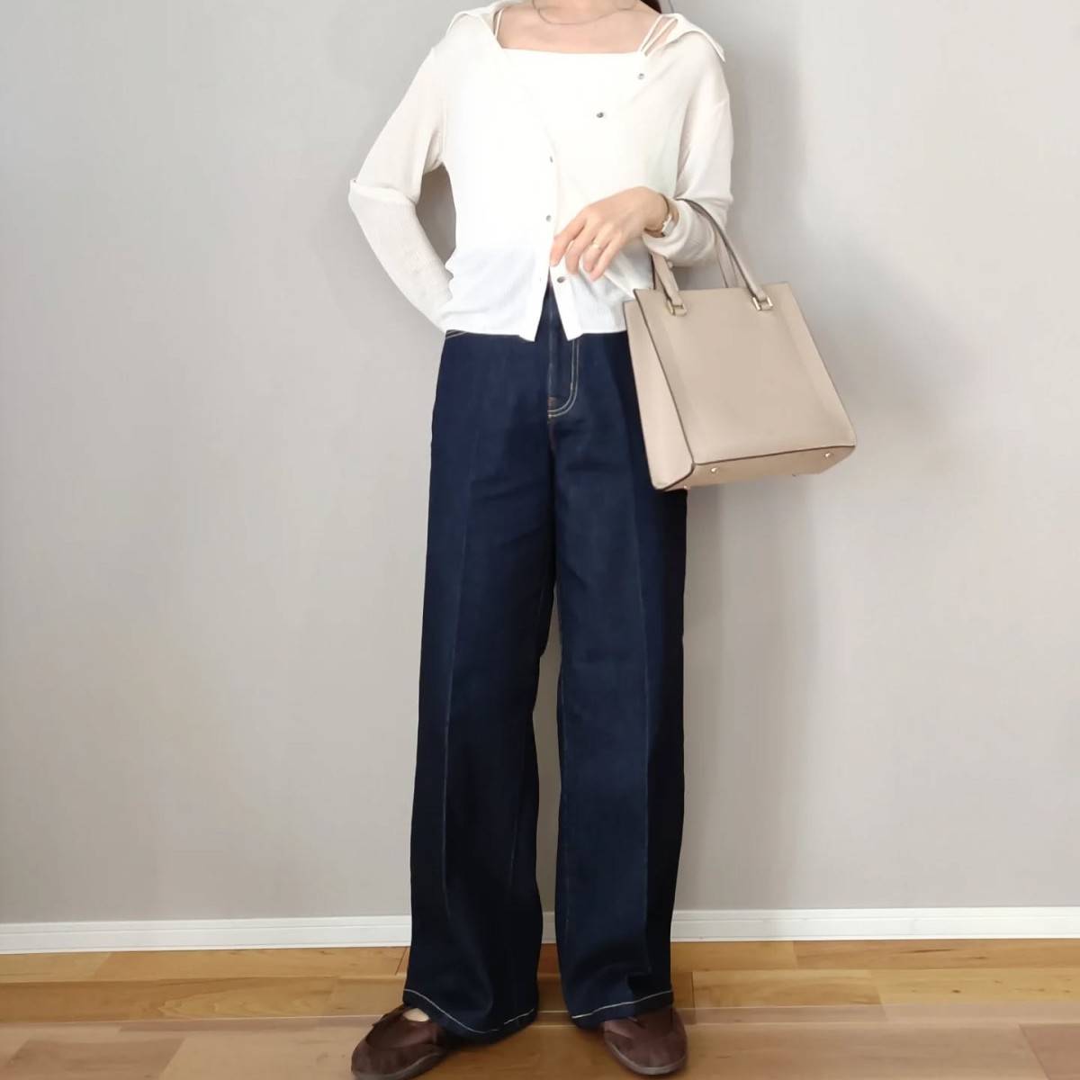 【3月編】老け見えしないカーディガンコーデ②肩掛けして重心を上げる!