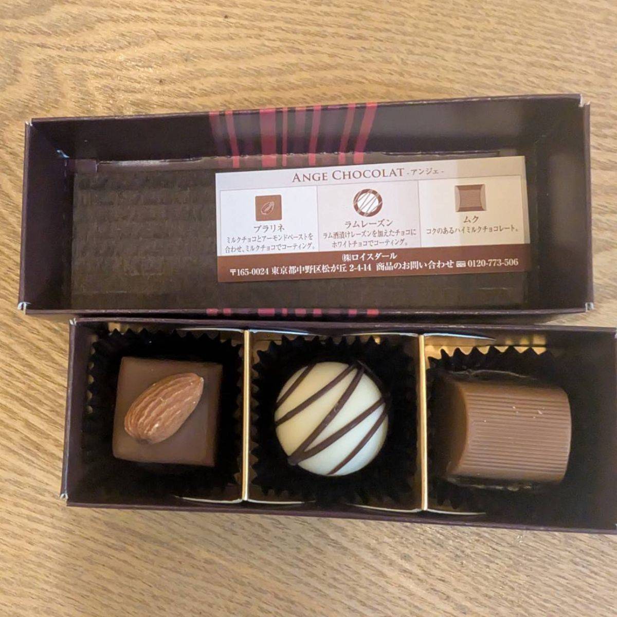 品のある箱や中身も繊細なチョコで3粒セットを食べましたがどれもおいしかった!