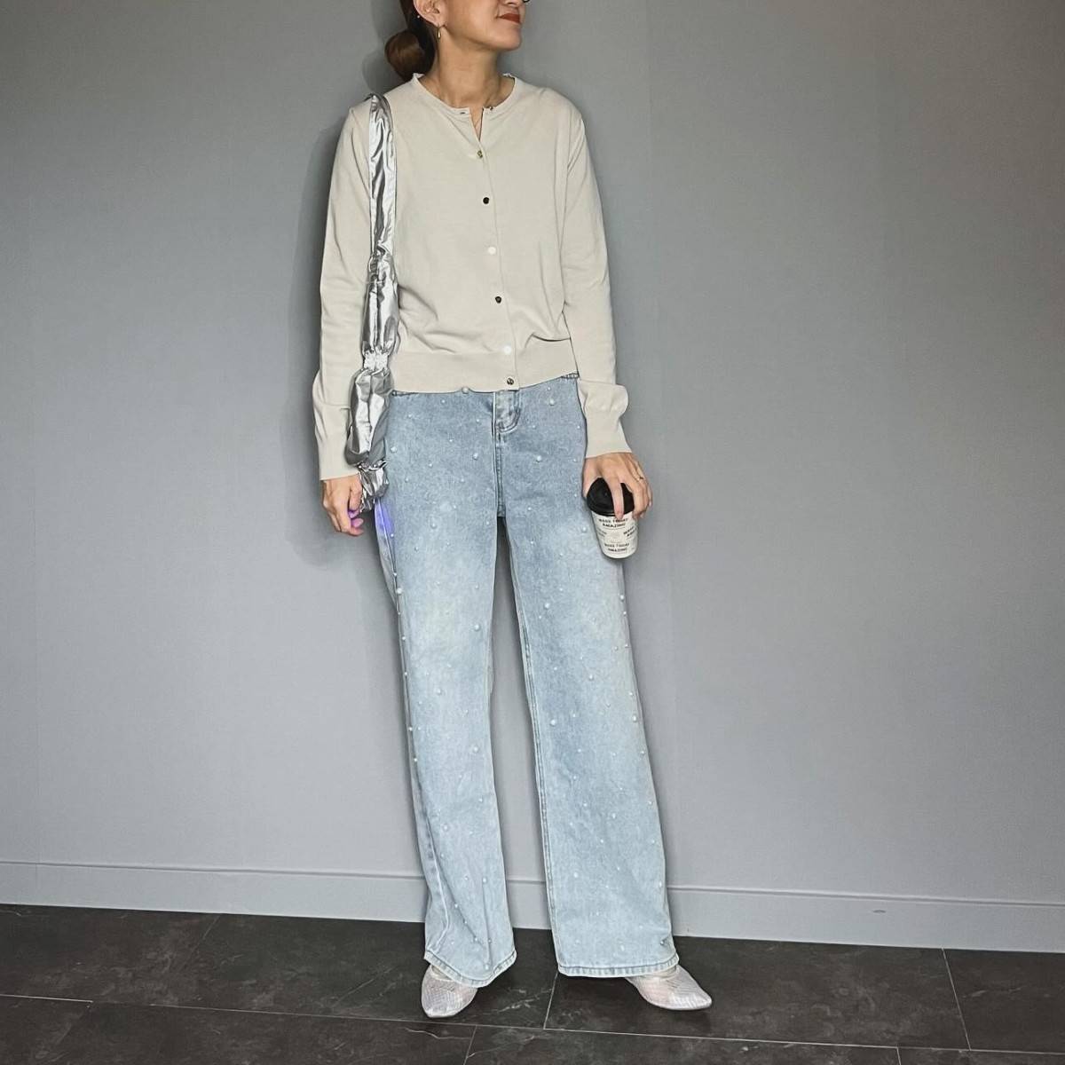 【3月編】センスいい50代向けカーディガンコーデ⑤デニムパンツを合わせる♡