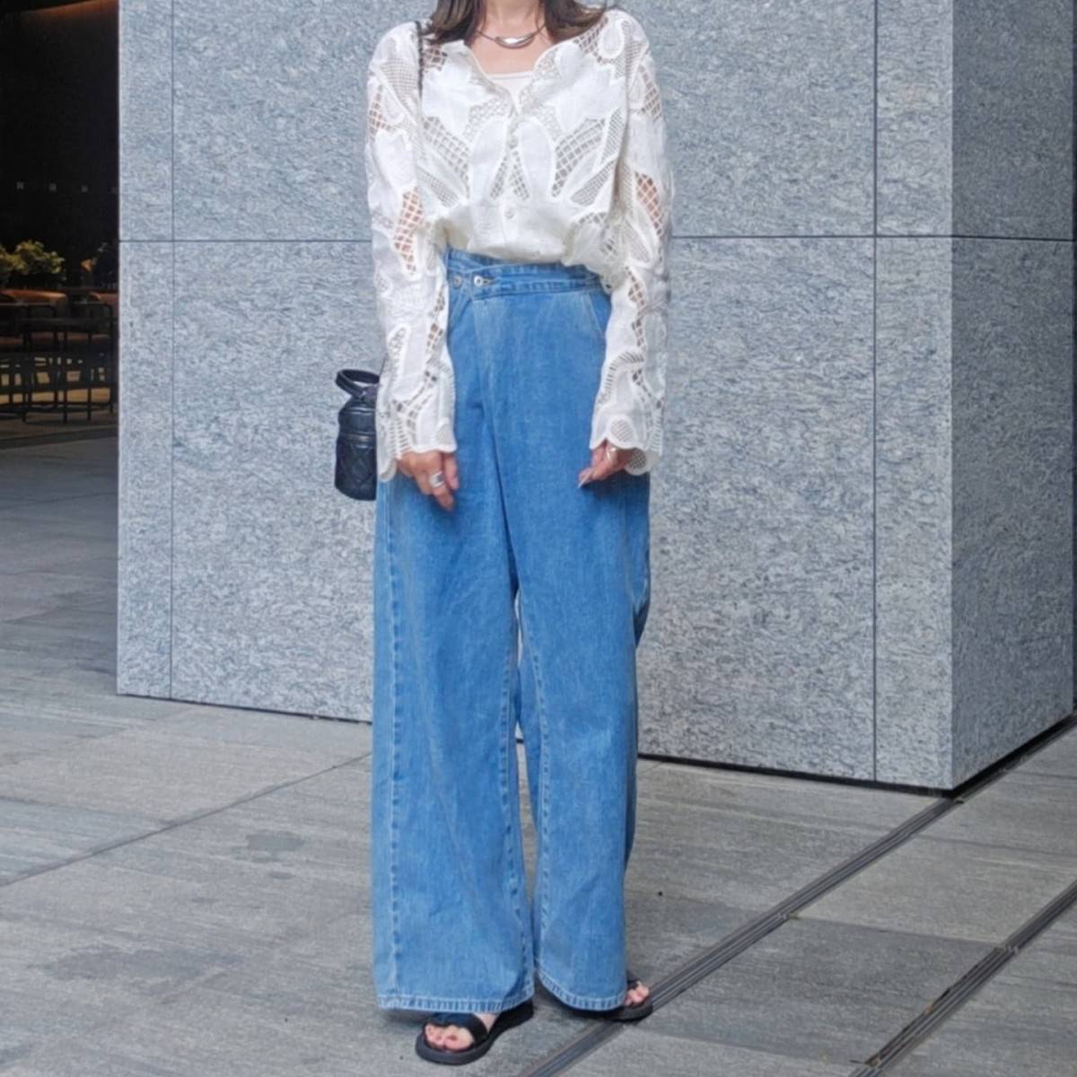 【春編】老け見えしないブラウスコーデ⑤レースブラウス×デニムパンツ