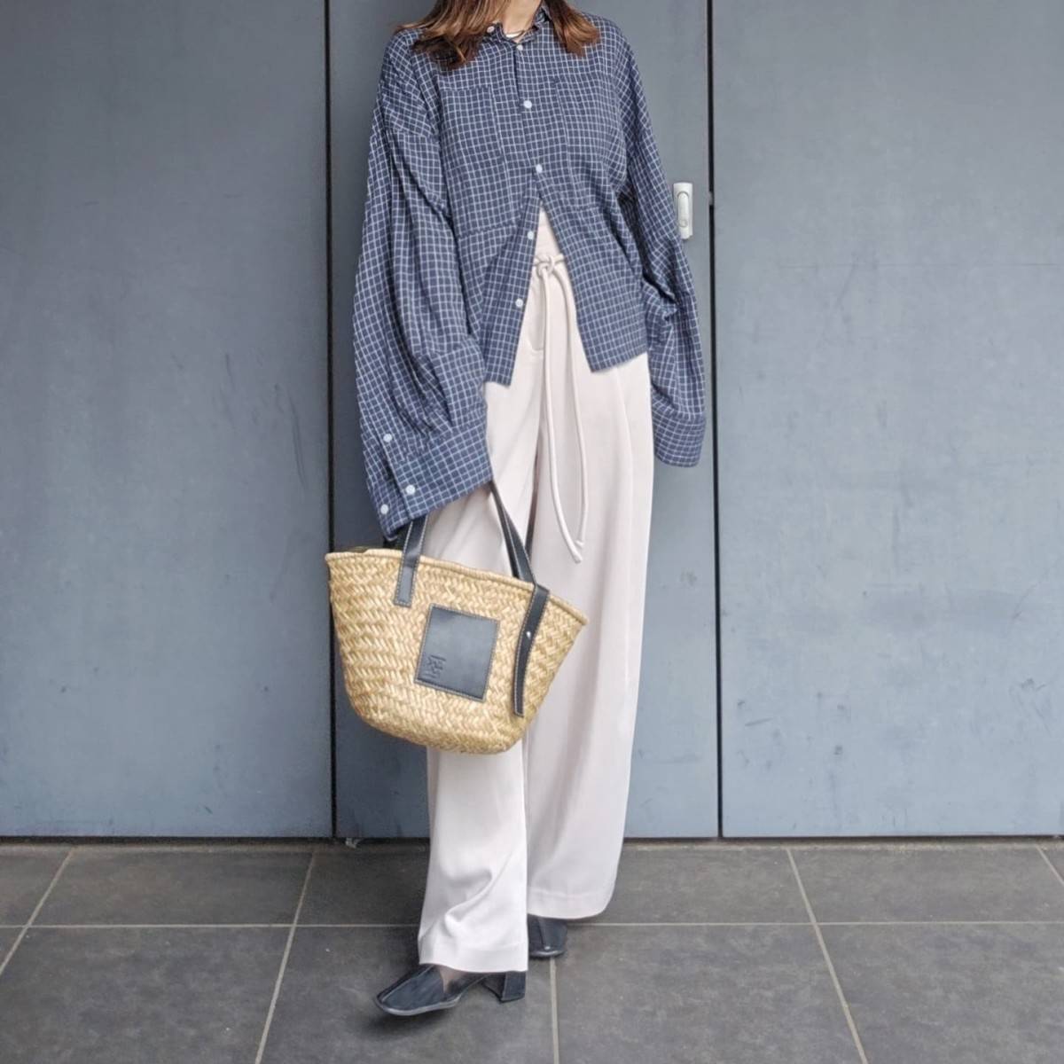 チェック柄のシャツを着るときにきれいめに仕上げたいなら、ボトムスは断然ワイドパンツがおすすめ!