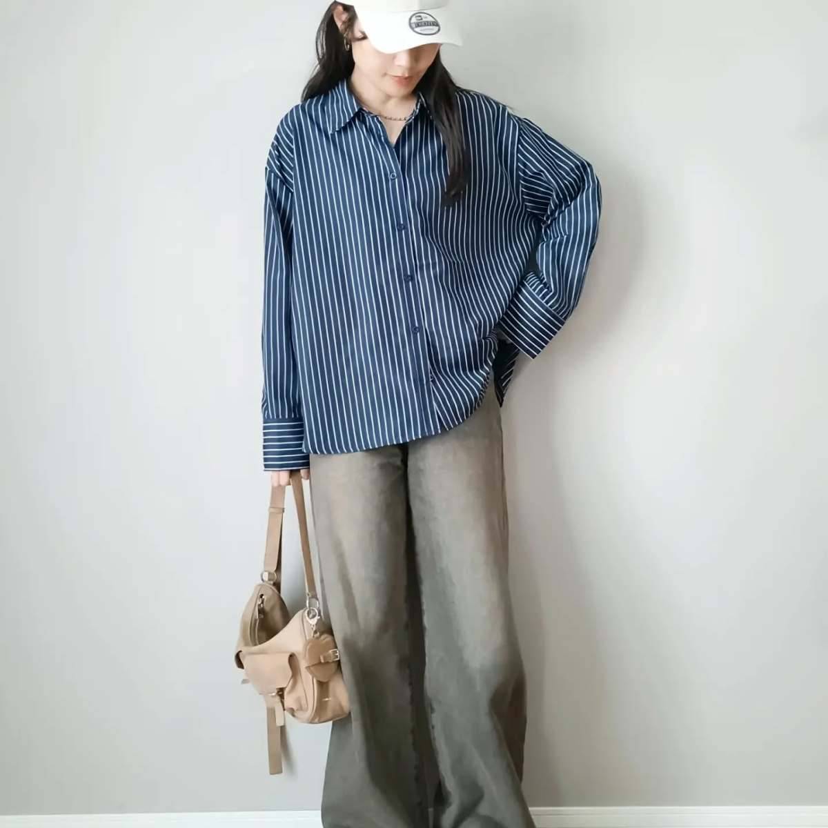 シャツはストライプ柄を選ぶと、さわやかで春らしい印象に♡