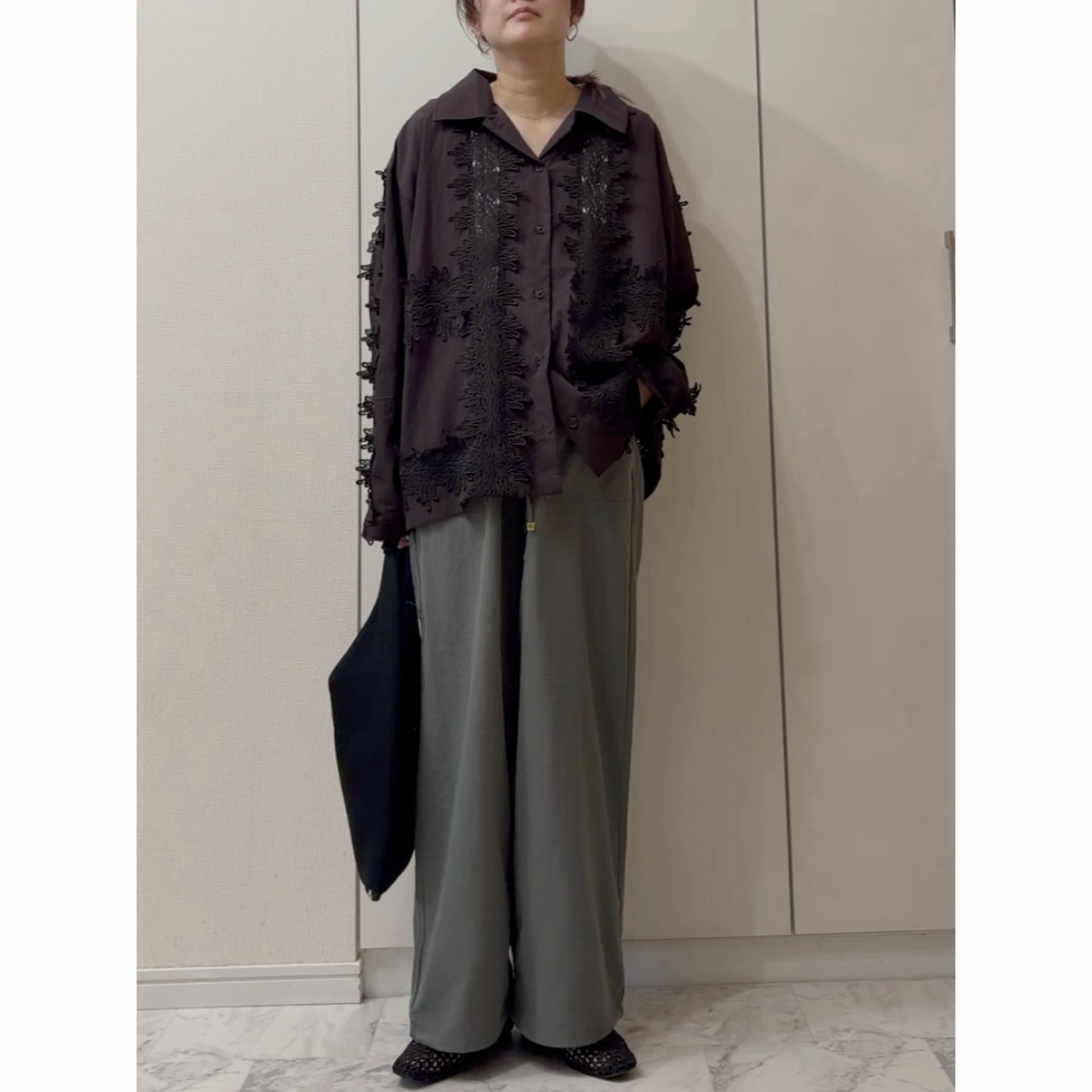 【4月編】センスいいワイドパンツコーデ⑤レースシャツを合わせる!