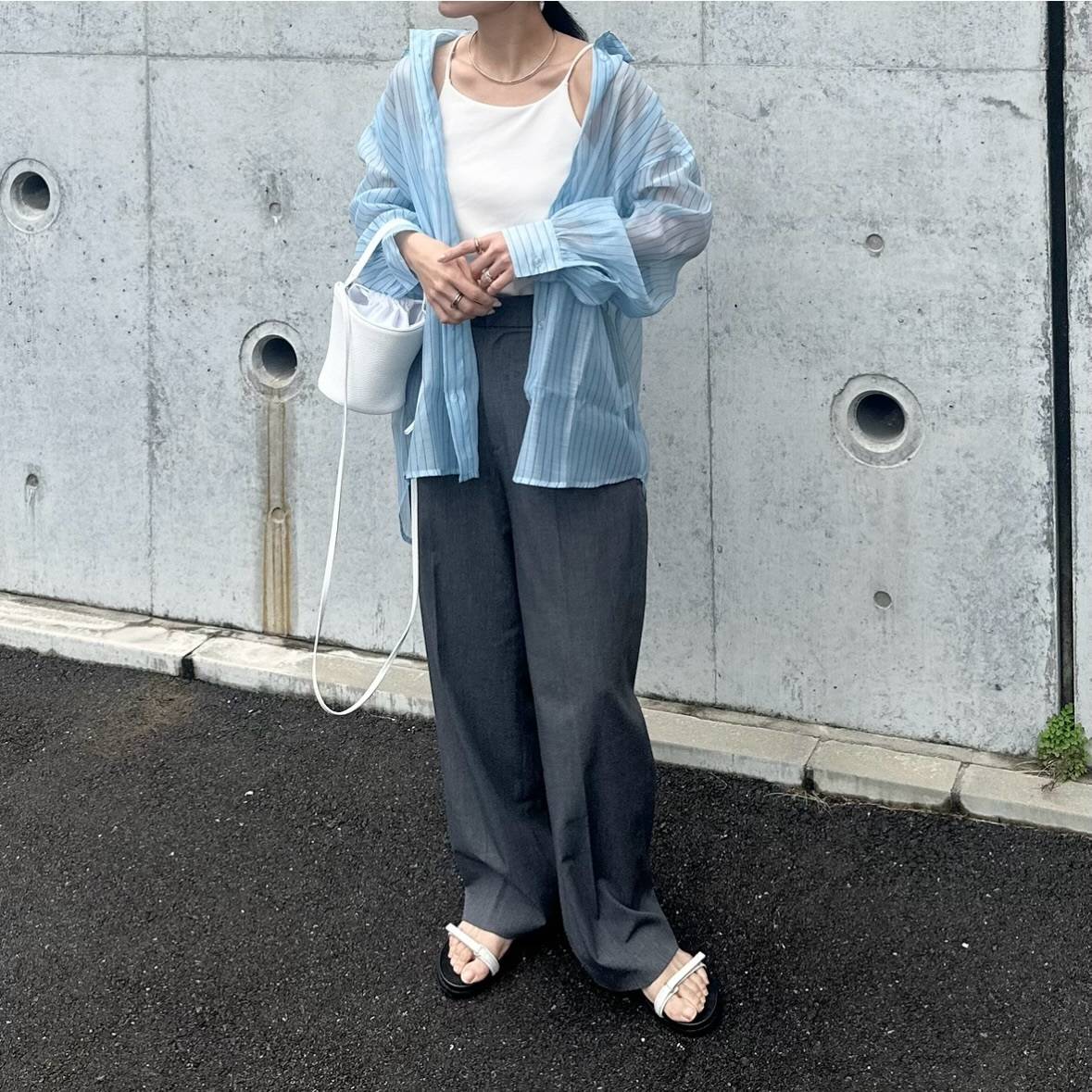 【4月編】センスいいパンツコーデ⑤シアーシャツを羽織る♪