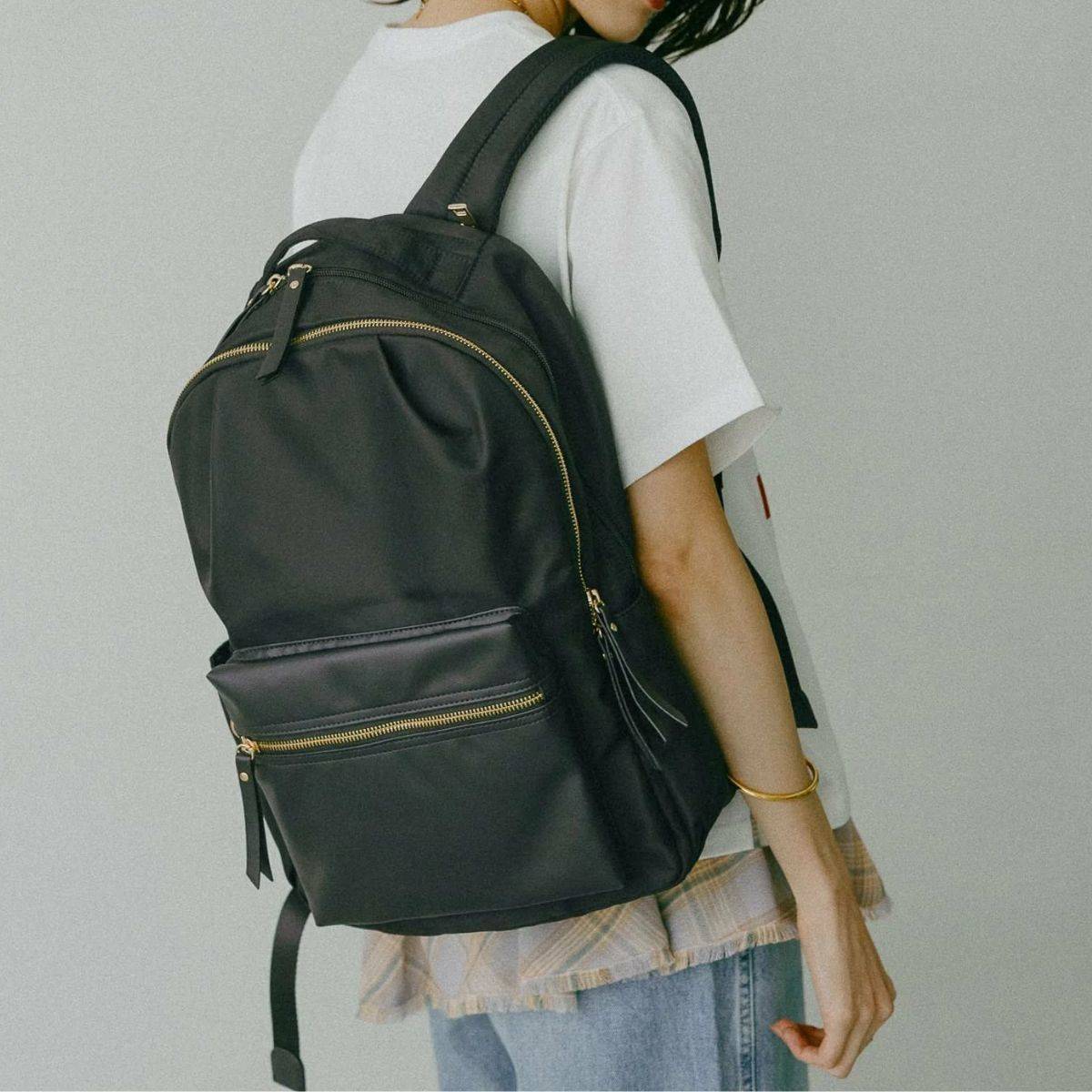 無駄のないミニマルなデザインが素敵な、GLOBAL WORKの「スペ軽撥水リュック」。きれいめなスタイルにも合わせやすい、上品なアイテムです。