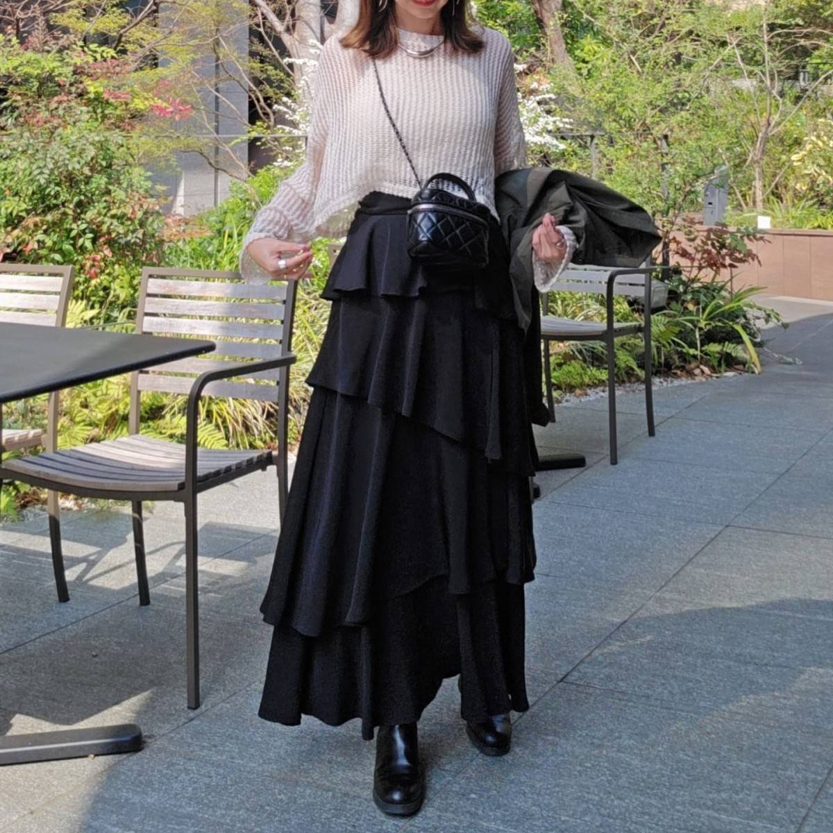 【4月編】周りと差がつく黒スカートコーデ⑤シアーニット×ティアードスカート