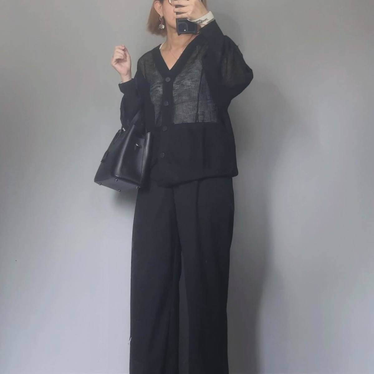 【4月編】センスいい50代向けカーディガンコーデ⑤オールブラックコーデ