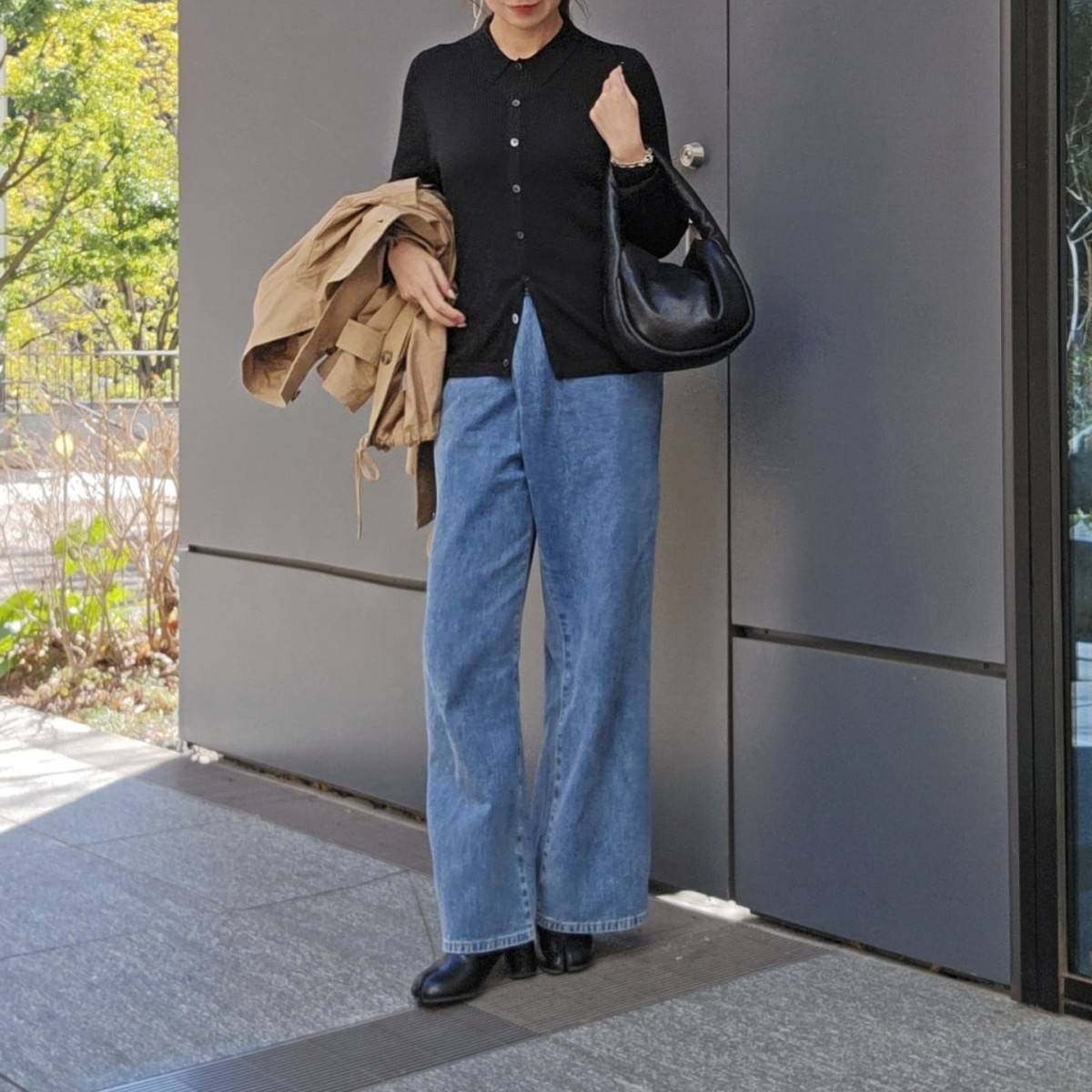 【4月編】垢抜けるカーディガンコーデ⑤襟付きカーディガン×デニムパンツ