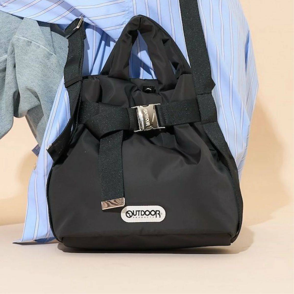 両手が空く!大容量のバッグ③OUTDOOR PRODUCTS 別注ベルト付きパデッドトートバッグ